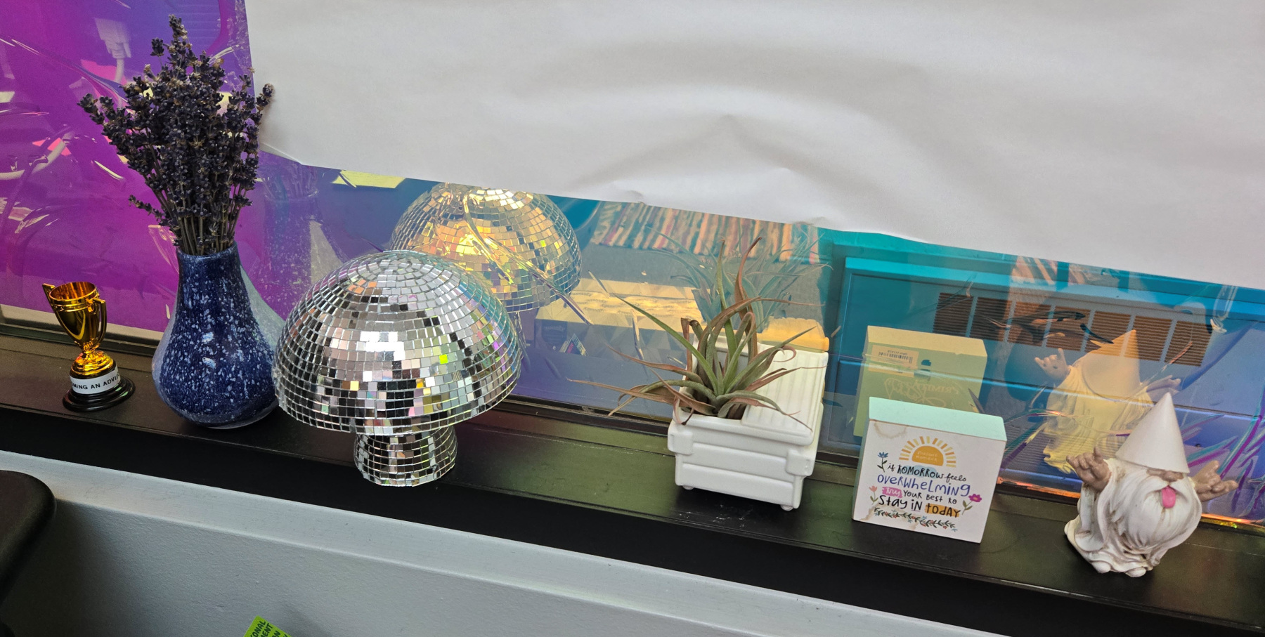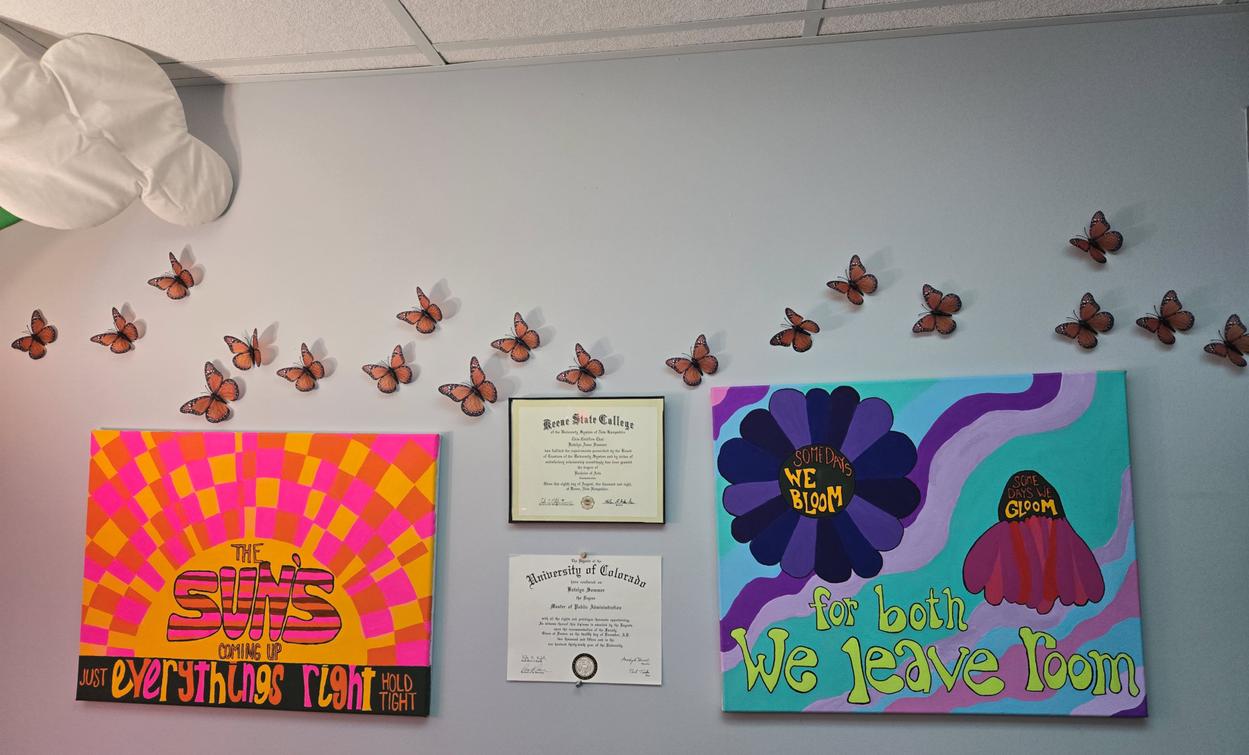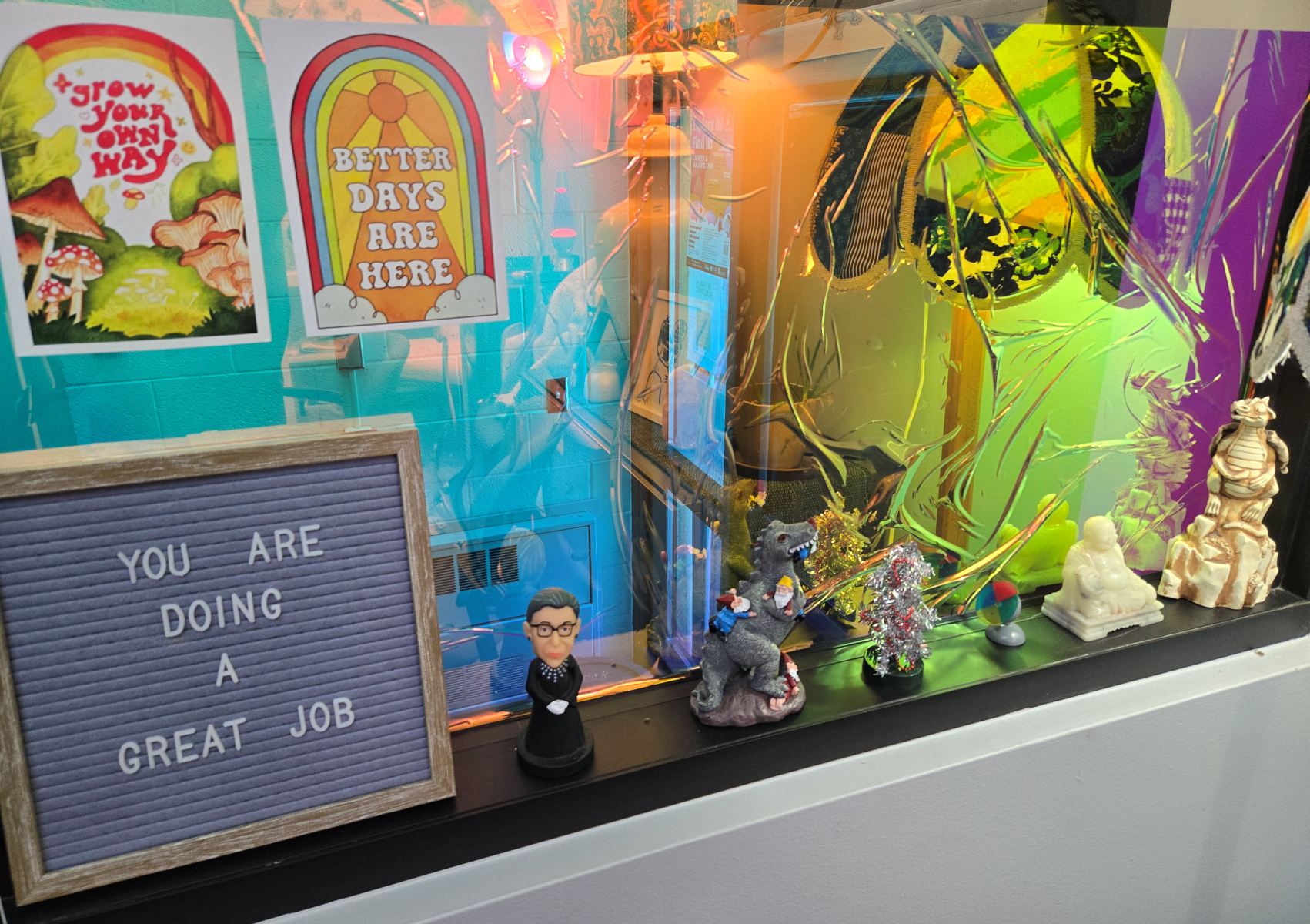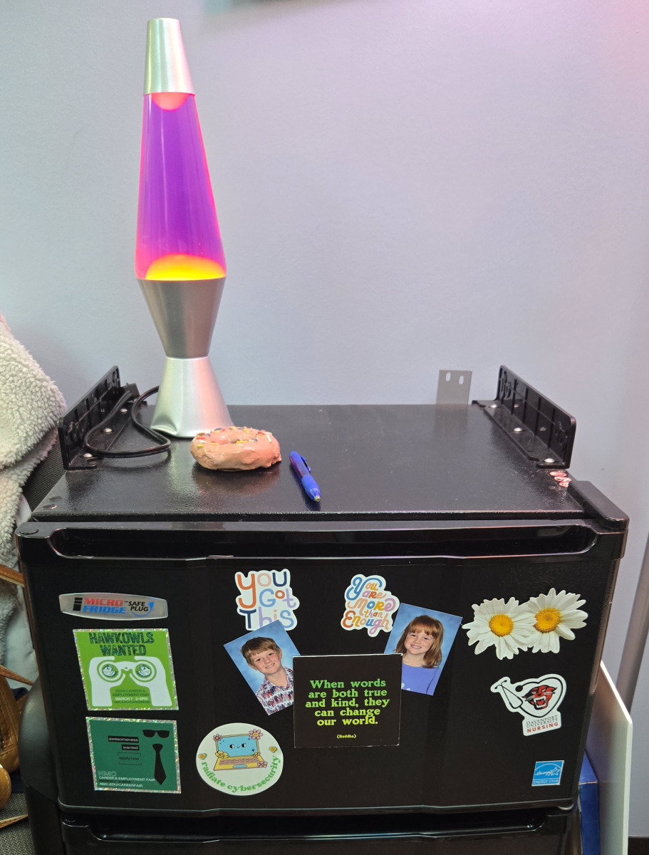 On a recent visit to the Osterlin Building to talk with Katie Sommer-Ford, NMC Academic & Career Advisor, about the Lightcast Career Coach modules featured on some of our program webpages, I couldn’t help but notice all of the wonderfully interesting things in her office. Originally from New Hampshire, Katie lived in Florida and Colorado before landing in Michigan and starting at NMC as the Advising Office Manager in January of 2020 (right as COVID changed everything). Katie is a very colorful person, as is her office, and she agreed to let me tell a bit of her story through some of her things. Check it out: